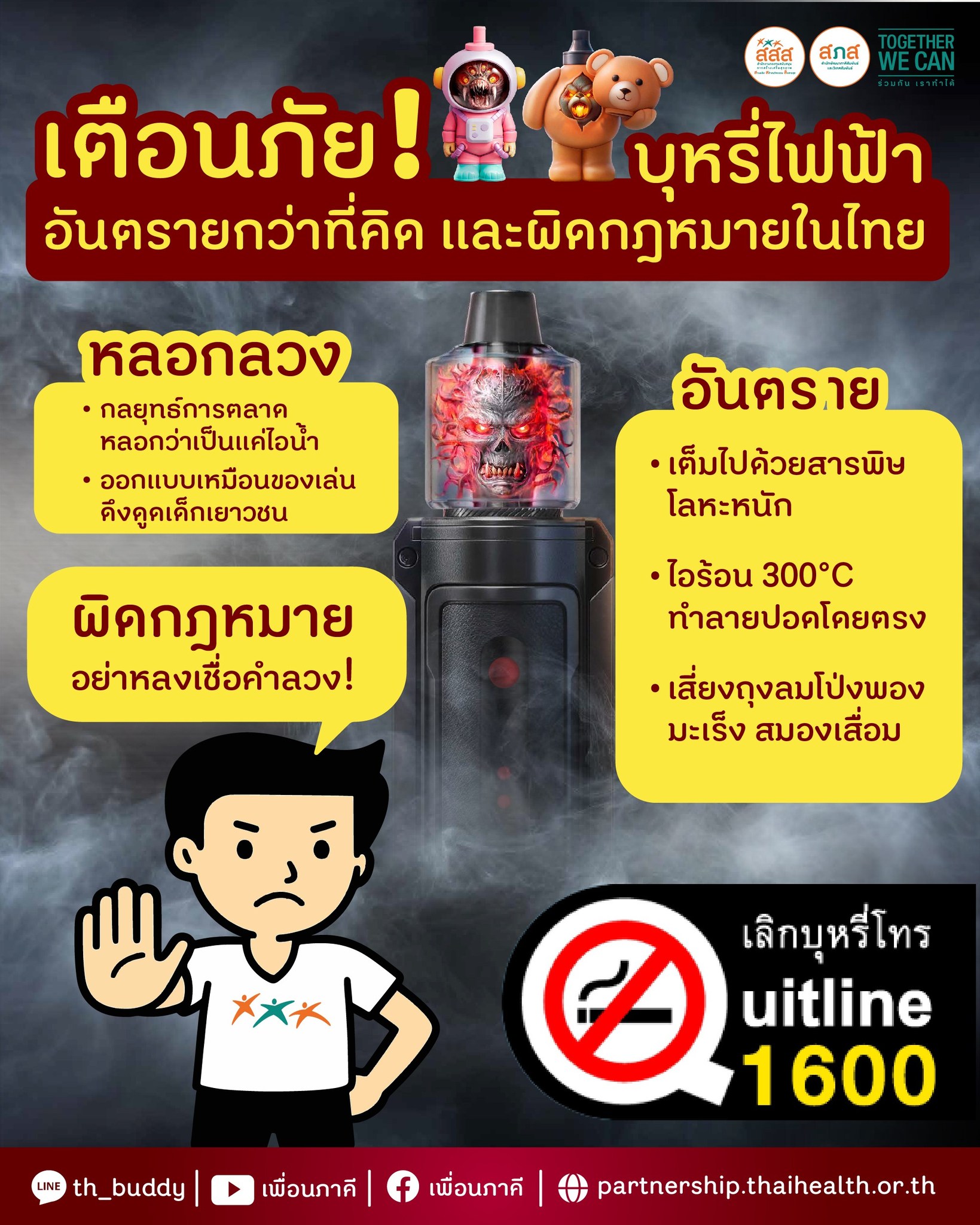 บุหรี่ไฟฟ้าไม่ได้ช่วยให้เลิกบุหรี่มวน เป็น ‘อันตรายกว่าที่คิดและผิดกฎหมาย’ ในไทย ไม่ได้ช่วยเลิกบุหรี่ แถมอันตรายกว่าเดิม! หลายคนคิดว่าบุหรี่ไฟฟ้าปลอดภัยกว่าบุหรี่มวน แต่จริงๆ แล้วมันเต็มไปด้วย สารนิโคต…